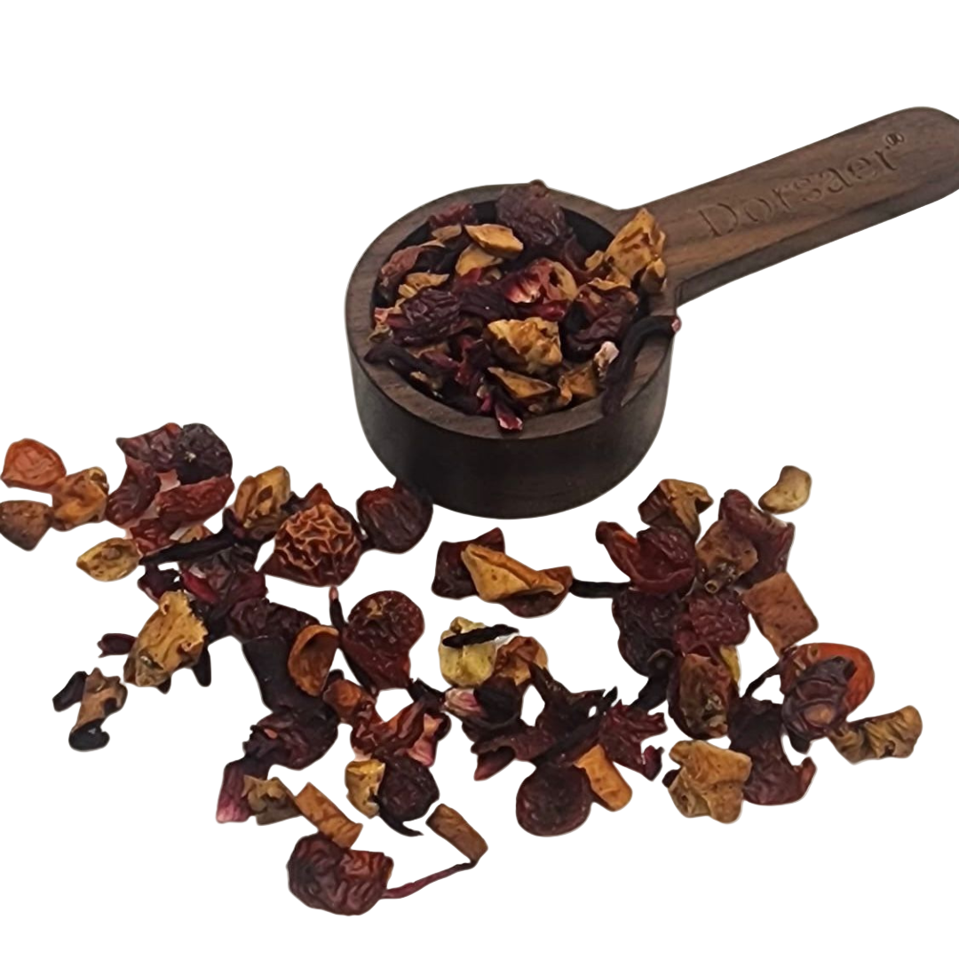 Ingredients: Dried fruit pieces (strawberry, kiwi, apple, hibiscus, etc.), natural flavors Brewing Tip: Steep 1-2 tsp in hot water (95°C) for 5-10 minutes. Chill for a refreshing iced tea or mix with sparkling water for a fruity fizz.